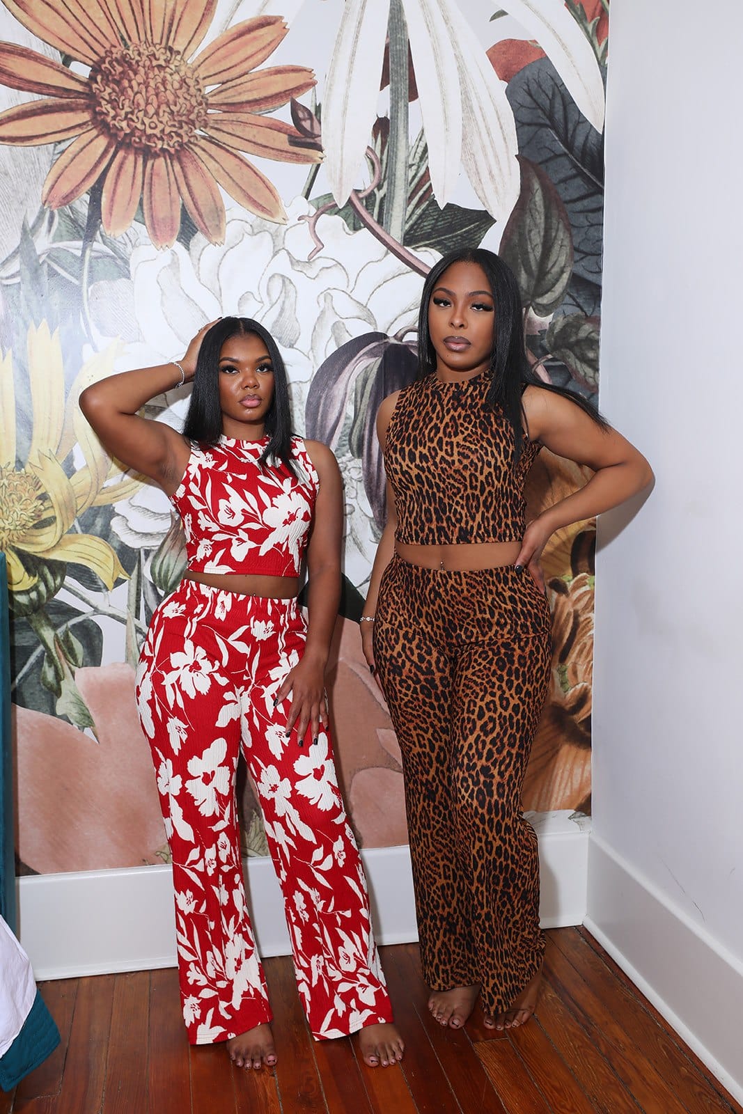 F.A.S.T Boutique PRINTED WRINKLE TEXTURED CROP TOP & PANTS SET