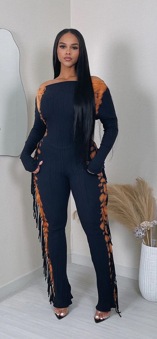 F.A.S.T Boutique BLEACHED 2-TONE SIDE FRINGE JUMPSUIT